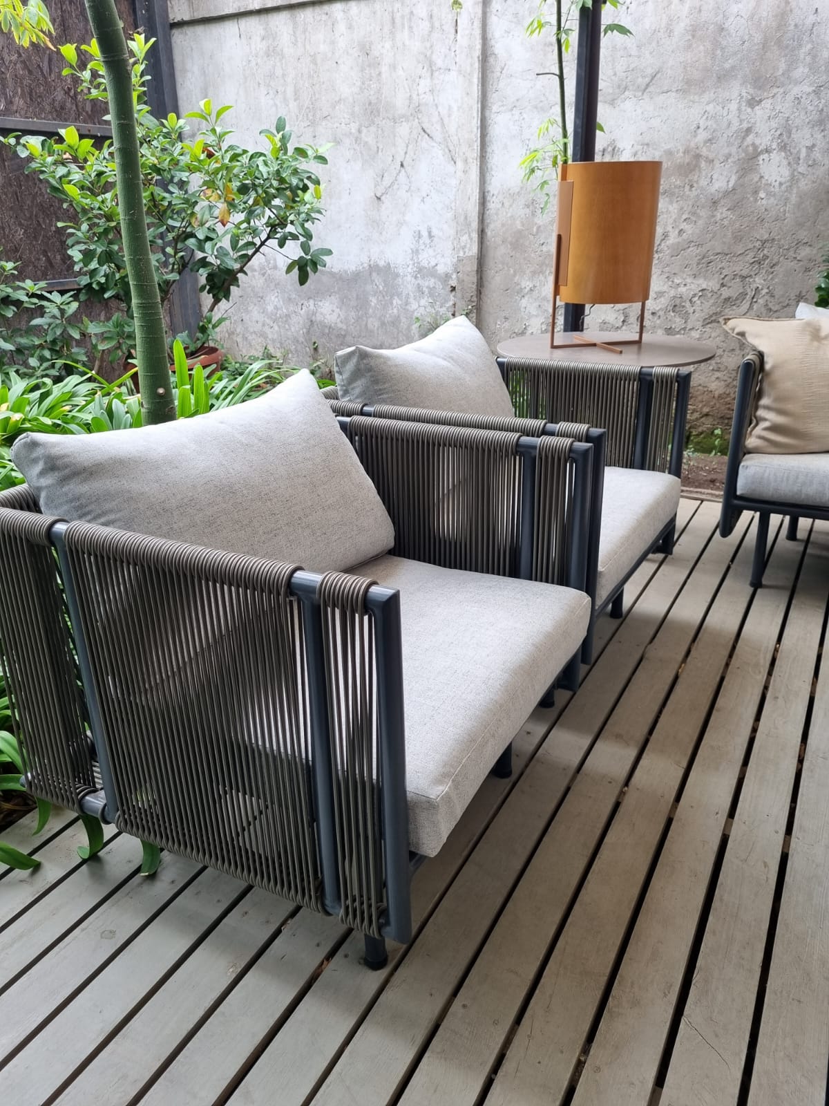 - Estructura: Fabricada en aluminio, pintura electroestática color gris grafito.