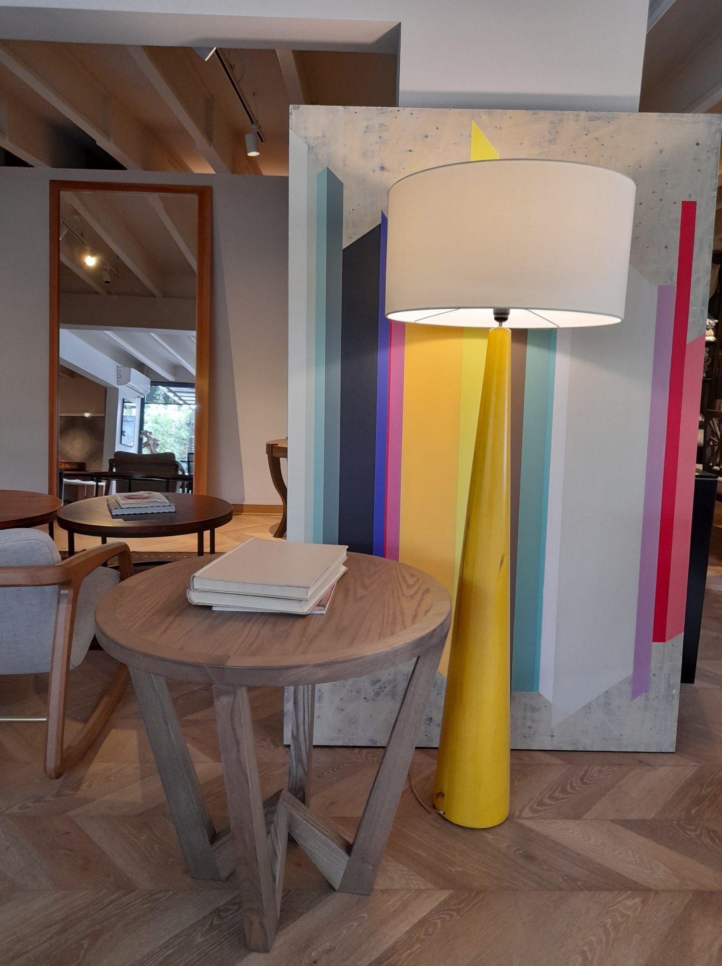 Lámpara de pie fabricada en madera de castaño con terminación de color negro. Si necesitas modificar especificaciones ponte en contacto con nosotros para hacer un pedido especial.