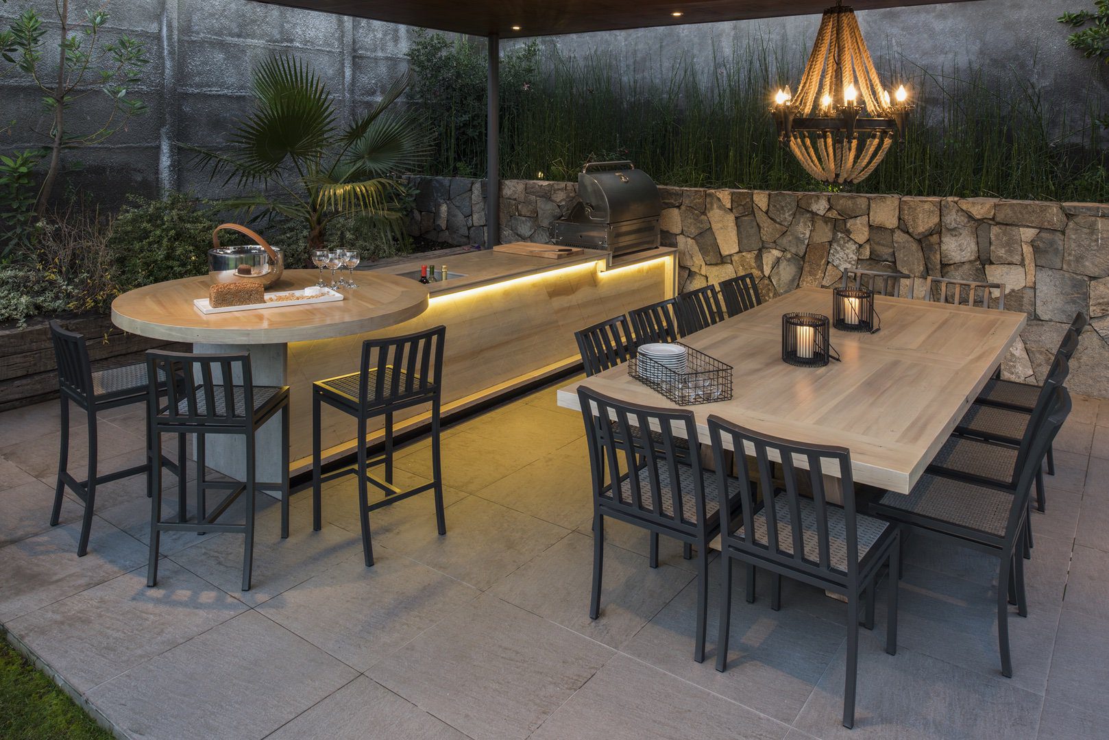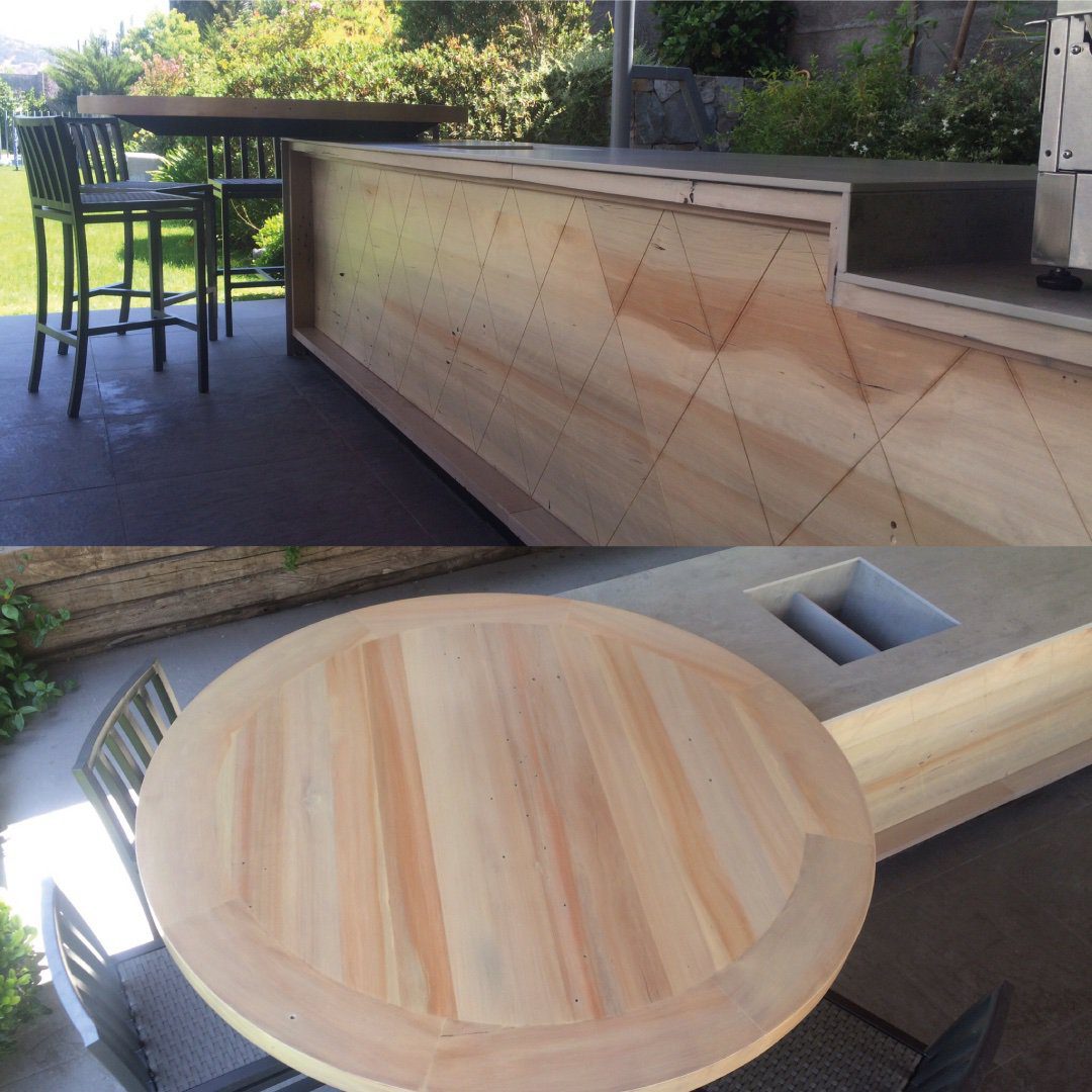 Claudia nos encargó habilitar un quincho en su casa. Ella necesitaba un espacio funcional, pero a la vez acogedor. El desafío de Klammer fue combinar ambos requisitos para lograr el objetivo. En esa búsqueda para lograr un lugar cálido, es que optamos por la madera reciclada, pero con muebles de líneas modernas y componentes con tintes clásicos como la lámpara colgante, y por supuesto, una luz cálida y tenue. En función de la circularidad y movilidad, decidimos hacer muebles independientes y no en obra. Otra particularidad a destacar, es que este proyecto partió con la premisa de que el parrillero no debía estar solo, si no que debía participar con las demás personas a pesar de estar encargado de la parrilla.