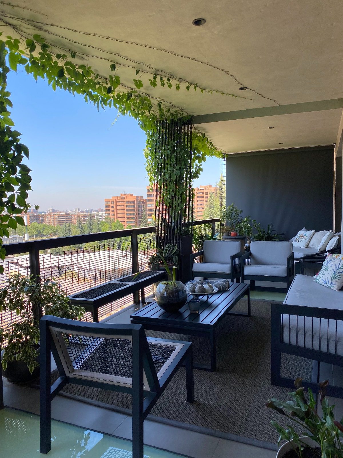 Además de trabajar en entrada, living y comedor, también lo hicimos en la terraza, espacio que fue diseñado completamente a la medida, al igual que los muebles, y que tiene una vista preciosa a la ciudad.