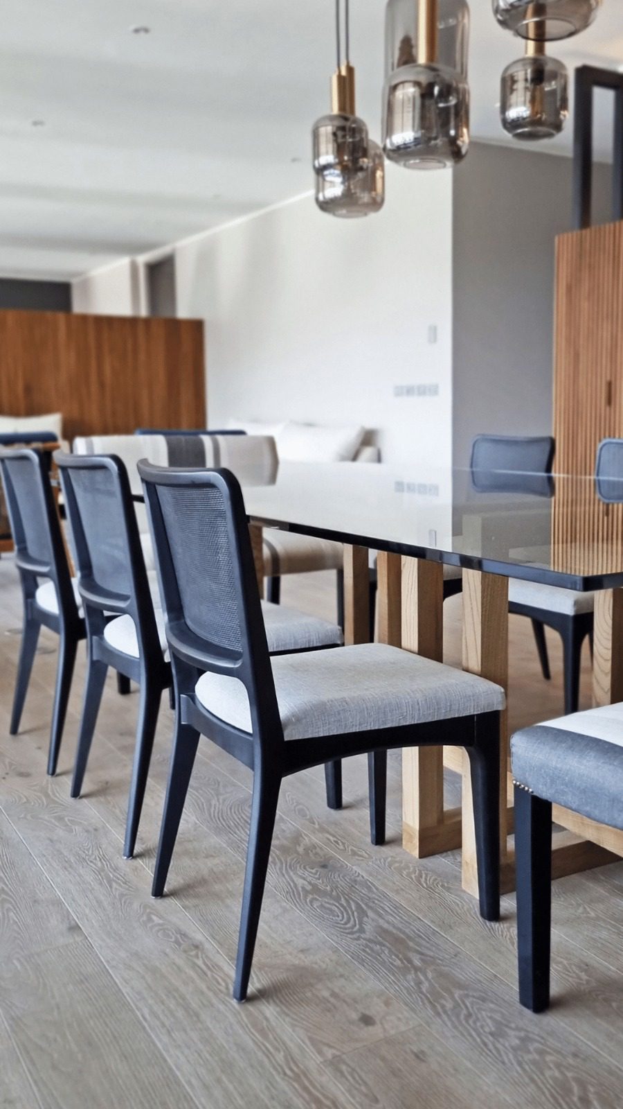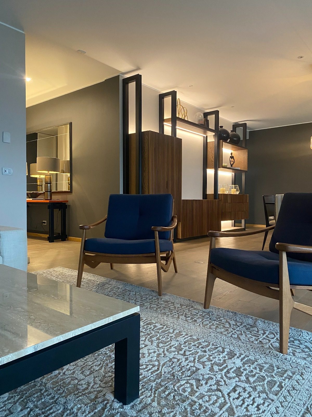 Detrás de este proyecto, una familia increíble que fuimos conociendo y trabajando en conjunto, eligiendo cada detalle, conversando con cada uno de sus integrantes, sus intereses y lo que querían, logrando fusionar el interiorismo, haciendo una selección especialmente para cada uno de los espacios: revestimientos, papeles murales, alfombras, iluminación, etc. , y el diseño y fabricación de cada uno de sus muebles, uno a uno, para este departamento que consta de tres niveles distintos además de un subterráneo. El resultado, un espacio que no sólo inspira, sino que también refleja la personalidad y el estilo de vida de sus dueños de casa.