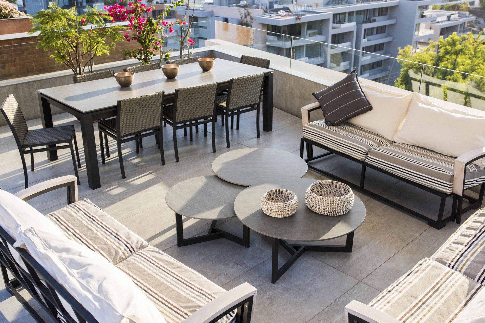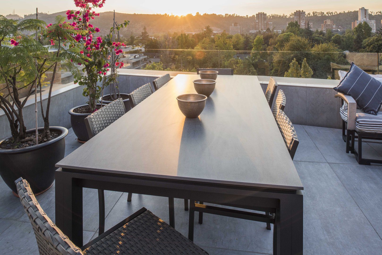 El objetivo principal era dar un nuevo look y comenzar a vivir el espacio de otra manera. El trabajo se inició con una evaluación de todos los elementos existentes ya que el cliente contaba con muebles elaborados por nosotros años atrás y solo se necesitaban pocas piezas nuevas. A partir de lo anterior, se diseñó nuevo mobiliario valiéndonos de nuevas tecnologías como las cubiertas para la mesa de comedor y laterales, en las que se ocupó Neolith, y se hizo todo un trabajo de restauración de cada una de las piezas existentes. Este proyecto lo asumimos como un desafío para nuestra oficina, es lo que definimos como “proyecto integral”, en que se requiere diseño, fabricación, decoración y restauración, seleccionando desde el tipo de porcelanato, hasta pinturas y objetos de decoración.